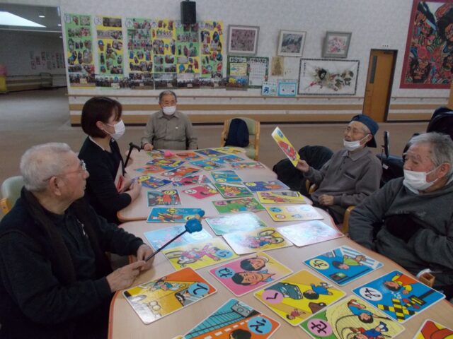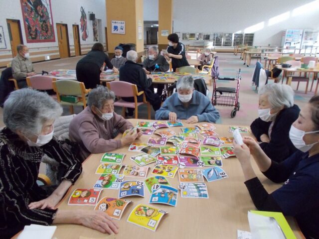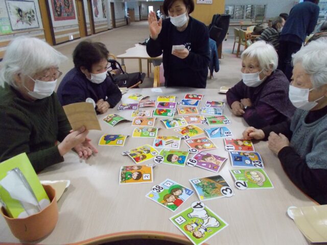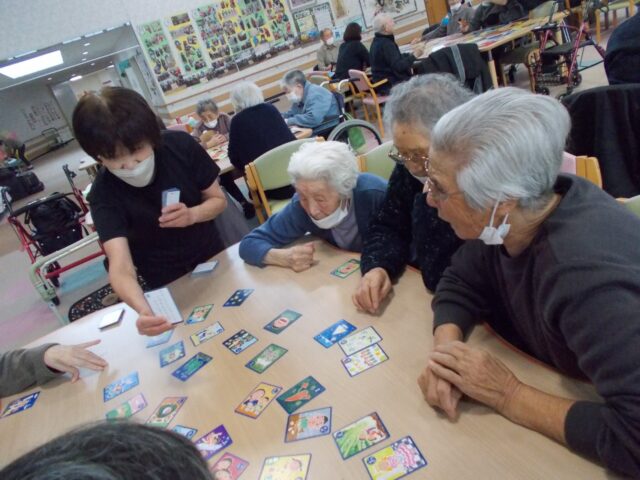 今月のゲームの様子です。カルタをして楽しみました😊